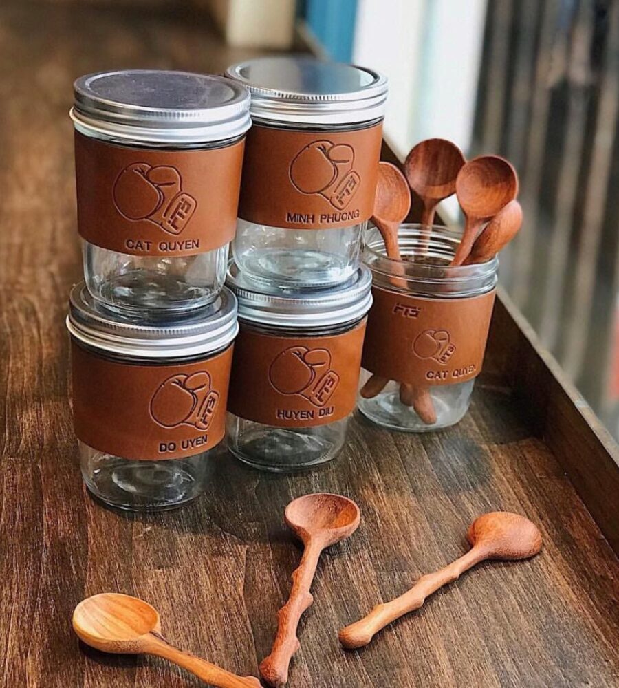 – Ly bọc da (tặng kèm muỗng gỗ)